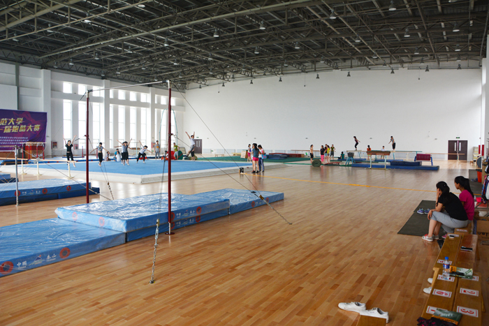新落成的体育楼为综合性建筑。在功能上,可分为办公区和各项目场馆区。南侧办公区是五层建筑,领导办公室、党政办公室、各系及专项教研室、各类实验室、会议室、学生讲堂、各专家办公室、体能康复中心、各协会和研究部门等等。北侧场馆区:一层为篮球、武术、健美操①和健美操②,二层为体育舞蹈馆,四层是排球馆、体操馆。