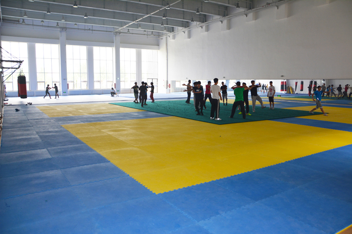 一层武术馆:标准赛场,木地板上铺软垫、地毯。