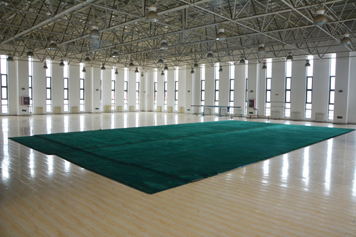 该馆共计870平方米,设立专业篮球场地一块,排球场地两块,铺设专业赛事木地板,馆高12米,宽敞明亮,内设更衣室。今年刚刚做完内部装修,木地板进行了专业清理。