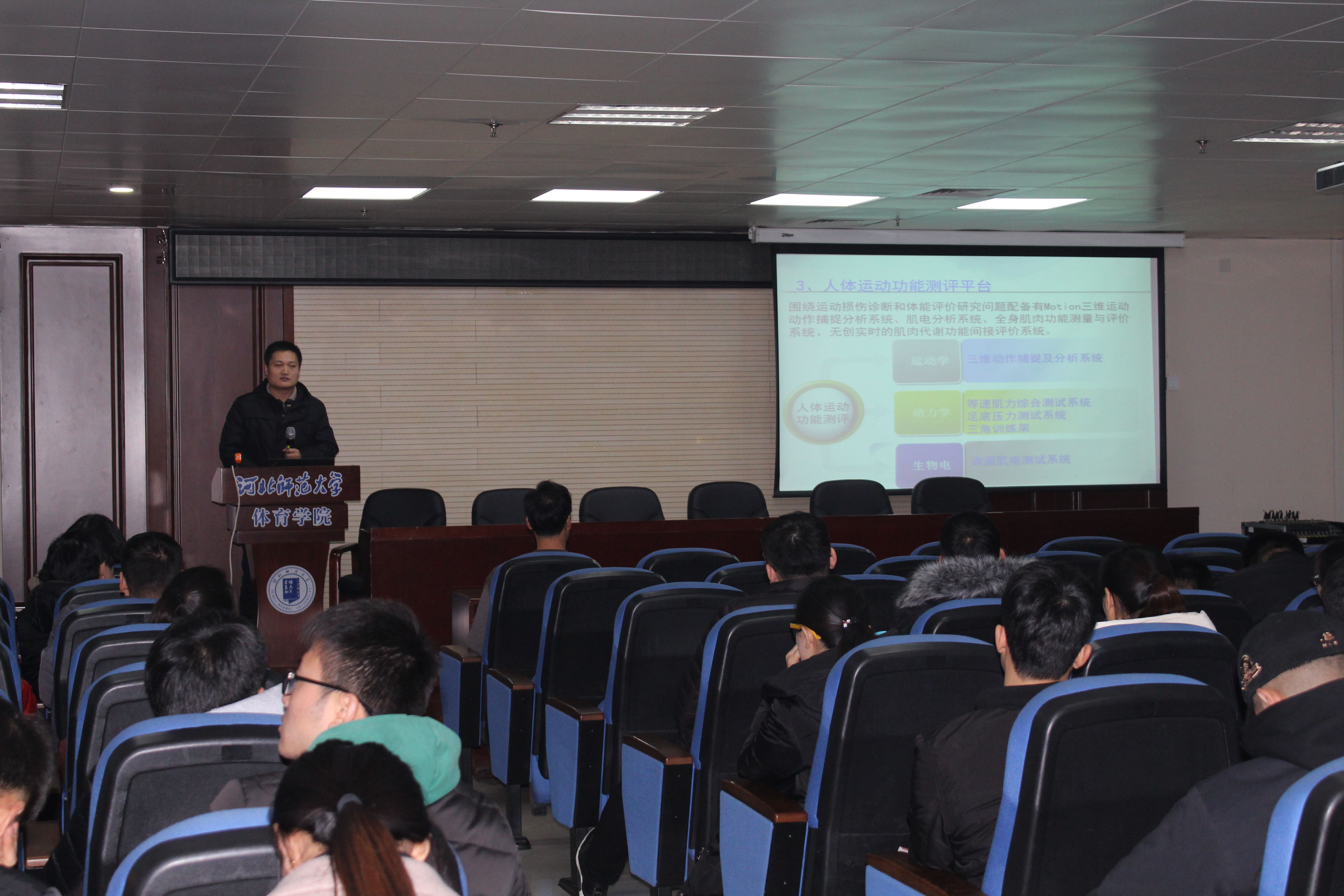 12月21日上午9:00,sunbet申搏官方网站在学生讲堂举行了第四期学术沙龙活动暨河北省人体运动生物信息测评重点实验室功能介绍。实验室霍洪峰老师应邀作报告。部分教师和一年级研究生参加了本次学术交流活动。